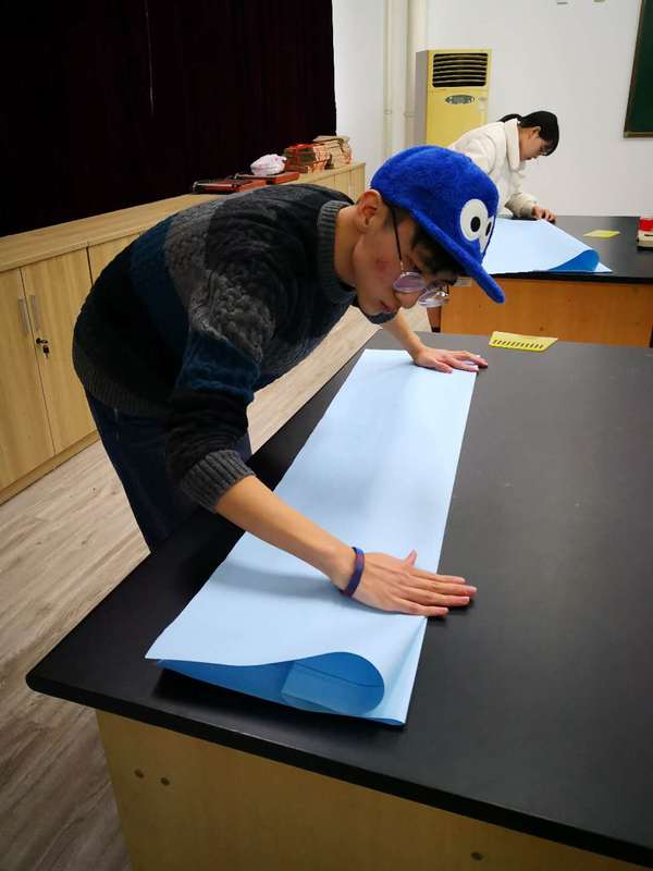同学们认真组卷、快速规范地折叠科技图纸
