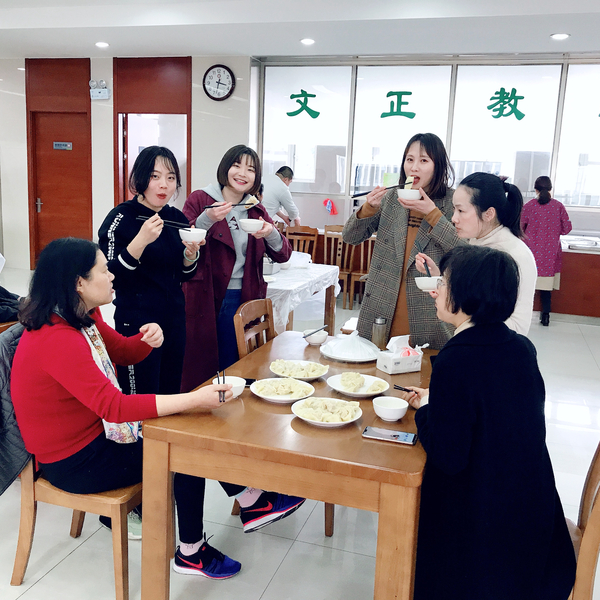 随着一锅锅热气腾腾,香气扑鼻的馄饨新鲜出炉,大家都兴致勃勃地品尝自己的成果,不时听见“好吃、好吃”的称赞声。和谐、融洽、喜气的节日气氛弥漫了整个活动。