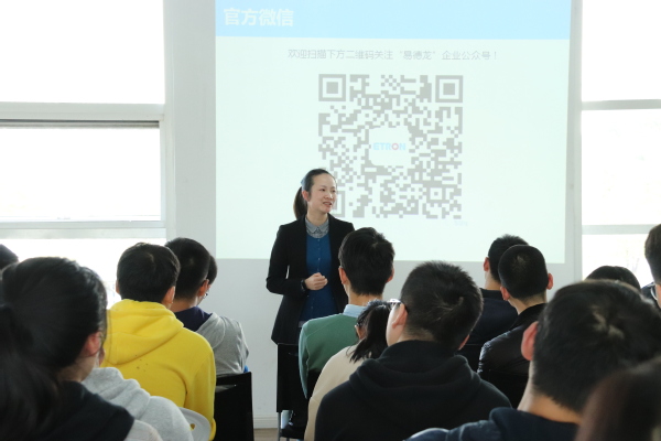 企业宣讲环节,胡晓谷通过PPT向同学们介绍了公司概况、人才需求及人才培养方案等,尤其重点介绍了公司完善的人才培训体系。宣讲结束后,胡晓谷耐心解答了同学们提出的关于薪酬福利、人才培养、人才招聘等问题,现场气氛十分热烈。
