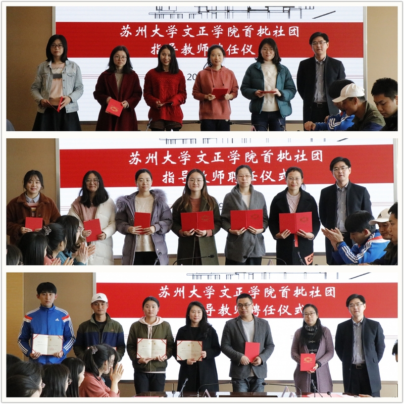 卞海勇宣读学院首批学生社团指导教师聘任决定。本次聘任的17名专业教师分别来自我院经济系、外语系、光电与能源工程系、轨道交通工程系、电子信息工程系、工商管理系、艺术系、体育教研室和数学教研室,均为我院自聘的专业教师,后续他们将从社团建设规划、社员教育管理、日常活动指导等方面参与物理创新实验协会、营销协会、艺轩文创社、羽毛球社等17个社团的指导。