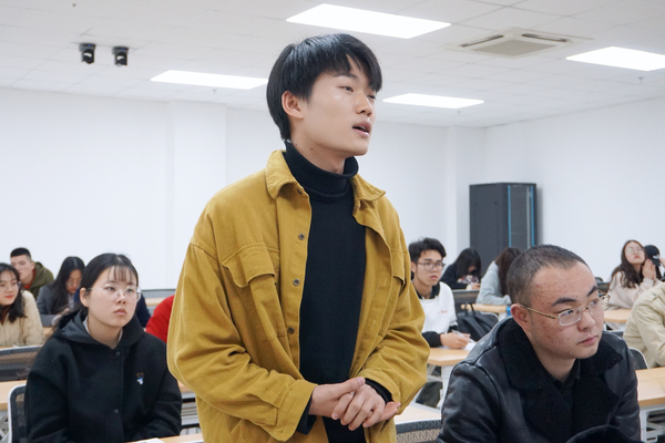 讲座接近尾声时,有同学询问了徐伟对大学生创业的看法,徐伟作为一位资深的导师引用客观数据给出了他的建议。他表示大学生在准备创业时,可选择一些小项目进入。同时,学生要保持敏锐的眼光,不能盲目跟风。