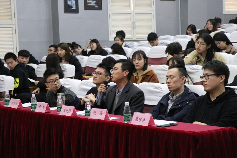 随后,评委对辩手的表现进行了点评。吴铁钧对各位辩手的出色表现给予了肯定,认为本场决赛具有“辩论的示范引领意义”,但也对双方辩手辩论中存在的不足之处给出了中肯建议,他提出,双方在以后的辩论中还需要加深对辩题的理解与剖析,同时要注意辩论中的表达陈述,只有让评委和观众听清楚己方的观点才能达到效果。钱海认为双方辩手无论是在团队配合方面还是心理素质方面都展现出了苏大学子积极向上的风采,再次肯定了辩手们的精彩表现。穆杨、崔宗祥、郭苏横三位评委对本场比赛中选手的不足之处提出了建议,希望双方辩论的着眼点可以更高、立足点更深刻,并表达了对各位辩手们的殷切期望。