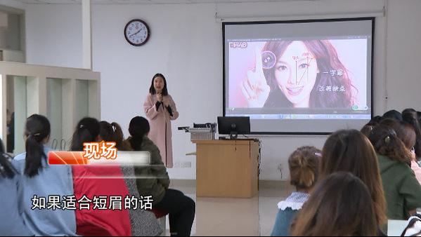 您没看错,这可不是在学生宿舍里,而是在课堂上。学生们面前一人一张化妆镜,或对着镜子自个儿琢磨,或与边上的同学互相帮助,大家今天上课的主题,就是研究如何才能画出一个适合自己的眉毛。