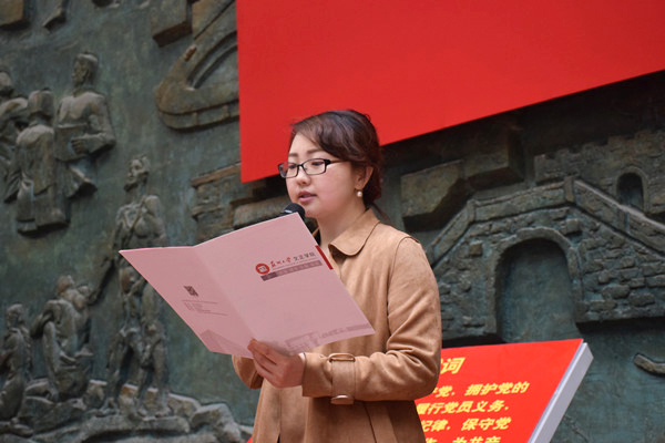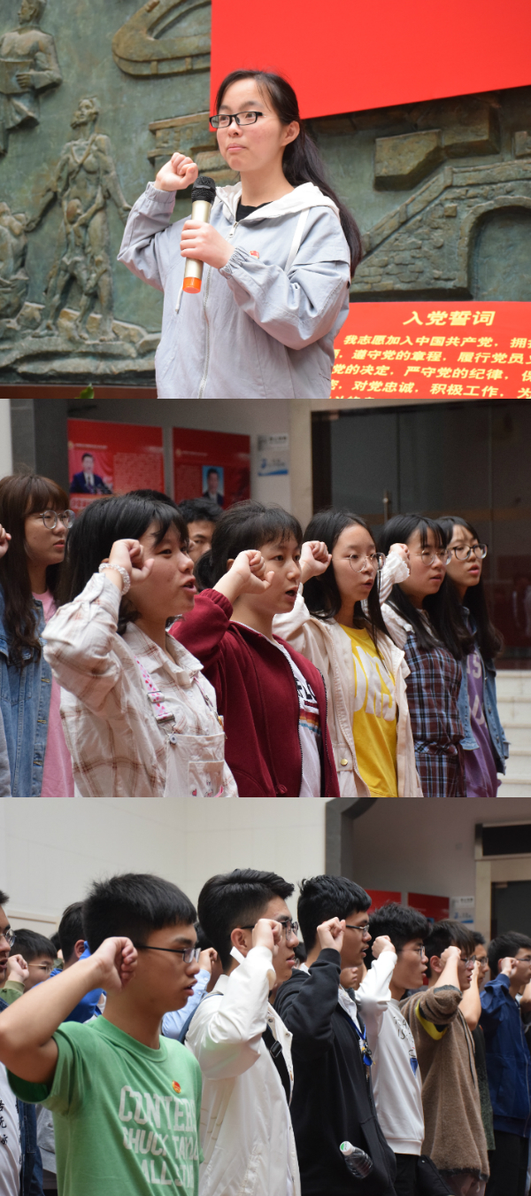 2018级信息工程团支部书记徐梦园发表了“弘扬五四精神,争做民族复兴的时代新人”主题演讲,号召大家树立坚定的理想信念、踏实学好专业知识、养成良好的文明行为,在新时代继续发展和弘扬五四精神,发出青年的时代强音。2018级信息工程团支部组织委员金凤仪带领全体团员重温了入团誓词。