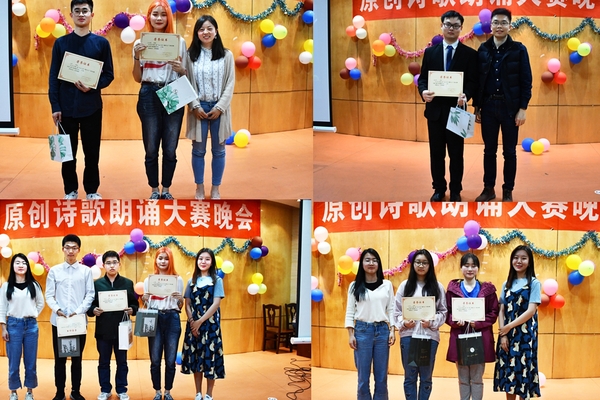 本届原创诗歌朗诵大赛分为初赛、决赛两个环节。初赛阶段共收到36件原创诗歌作品,最终由文学与传播系陈桂声、涂小马、张修龄、茆萌等专业老师评审出15件作品进入到了最终的决赛。