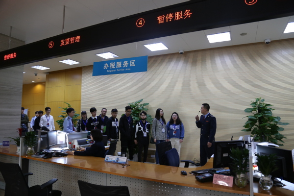 此次活动分参观、体验、座谈三个主要环节。活动现场,我院创业团队首先了解了办税服务厅的分区功能及日常业务的办理概况,体验了自助设备和增值税普票代开流程。随后在“模拟约谈室”体验了新办异常企业约谈,参观了解了特服号工作实况。