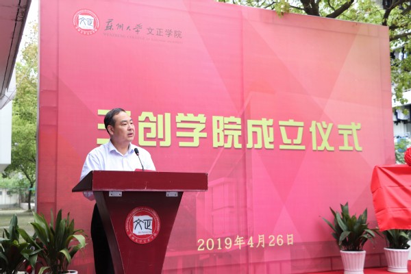 仲宏宣读《关于成立苏州大学文正学院三创学院及人员聘任的通知》