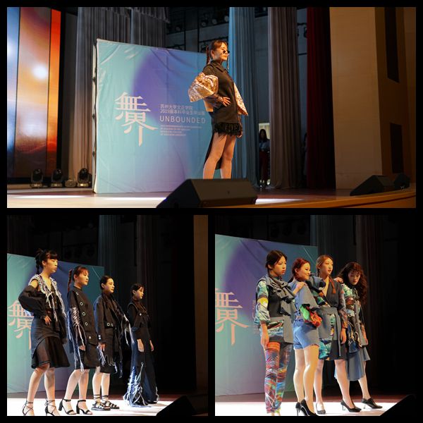 5月6日上午,我院艺术系2019届毕业生毕业设计展正式拉开帷幕。本次活动由“毕业设计作品展”“服装秀”两个部分组成。展演的主题是“无界”,旨在让即将踏出校园的年轻设计师们在艺术设计的世界里不拘一格,坚持原创和独立审美。出席本次活动的嘉宾有我院院长吴昌政,副院长施盛威,副书记、副院长袁昌兵,艺术系主任马路,服装设计与工程专业负责人蒋孝峰和苏州大学艺术学院部分指导老师,我院相关职能部门负责人、艺术系专业教师以及艺术系全体学生参加了本次活动。