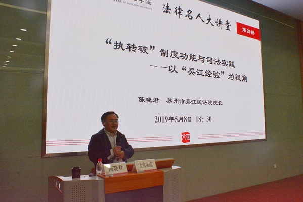 5月8日晚,由我院法政系主办的“法律名人大讲堂”第四讲在教学楼3-101成功举办。本次大讲堂邀请了苏州市吴江区法院院长、全省审判业务专家、中国人民大学破产法研究中心研究员、江苏省民诉法学会常务理事陈晓君作为主讲嘉宾,讲座主题为“‘执转破’制度功能与司法实践——以‘吴江经验’为视角”。我院法政系主任上官丕亮、团学指导老师吉顺权出席,大讲堂由上官丕亮主持。