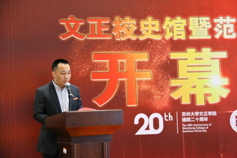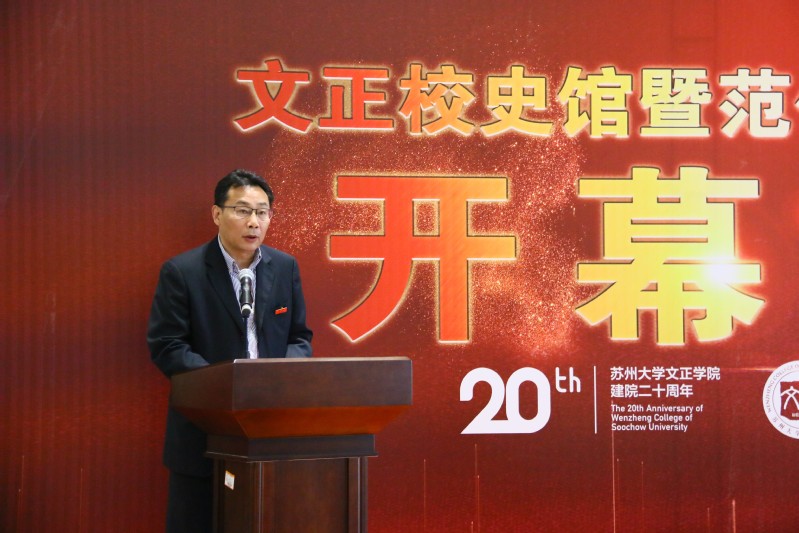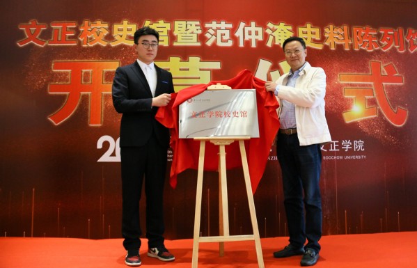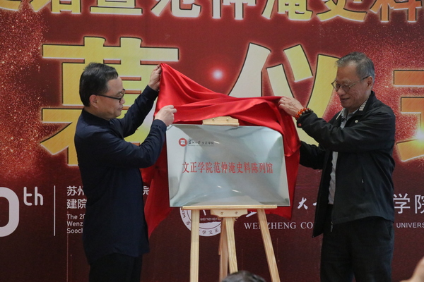 袁昌兵宣读了设立文正学院校史馆和设立范仲淹史料陈列馆的通知,曹国栋、学生代表徐乾共同为文正校史馆揭幕,范敬中、陆衡共同为范仲淹史料陈列馆揭幕。