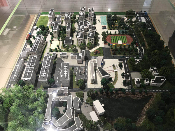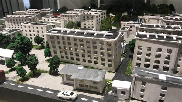沙盘用真的泥土和枯树叶布景,绿植、草皮重新上色,500多扇窗户全部手工雕刻。“护甲油、眉粉、吹风机……”这些常见的物品,都成了校园实景沙盘的组成部分。