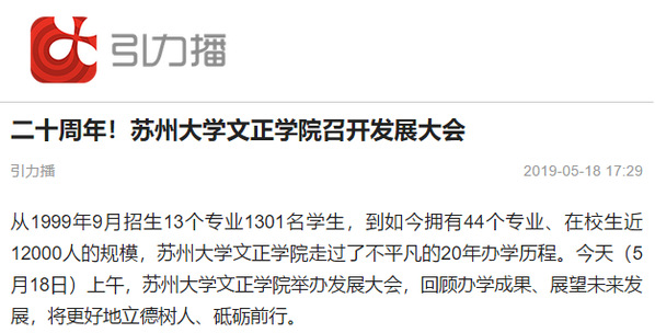 从1999年9月招生13个专业1301名学生,到如今拥有44个专业、在校生近12000人的规模,苏州大学文正学院走过了不平凡的20年办学历程。5月18日上午,苏州大学文正学院举办发展大会,通过回顾办学成果、展望未来发展以更好地立德树人、砥砺前行。