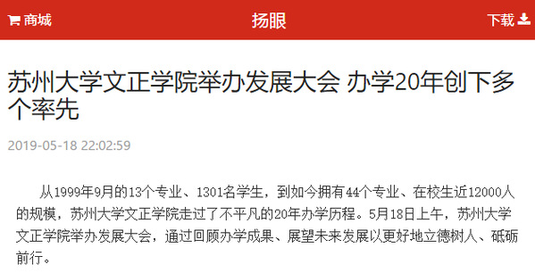 从1999年9月招生13个专业1301名学生,到如今拥有44个专业、在校生近12000人的规模,苏州大学文正学院走过了不平凡的20年办学历程。5月18日上午,苏州大学文正学院举办发展大会,通过回顾办学成果、展望未来发展以更好地立德树人、砥砺前行。