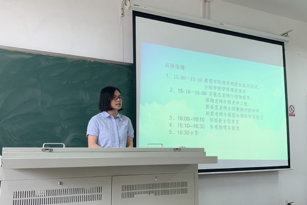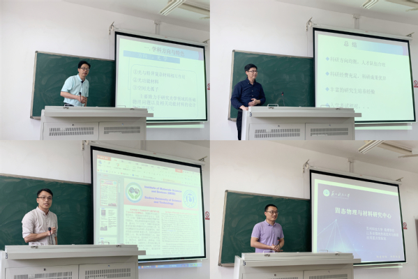 苏州科技大学数理学院党委副书记兼副院长胡世怡向同学们介绍了数理学院硕士点建设的相关情况,解读了苏州科技大学的招生政策。物理学和光电工程硕士点学科带头人吴银忠、物理科学与技术系教授郝翔从学科设置、科研成就、师资力量等方面详细阐述了物理学、光学工程学科硕士点情况。“千人计划”专家郭春显、硕士生导师赵蒙分别介绍了材料科学与器件研究院、固态物理与材料研究中心团队师资、科研项目等情况。