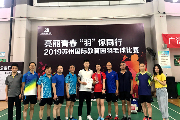 5月26日,2019年苏州国际教育园羽毛球比赛率先在国际教育园体育中心三楼羽毛球馆开战,我院13名教职工分两队出阵。其中文正飞羽1队先后战胜苏职大计算机队、苏旅财队、苏州经贸队从D组轻松突围,并在半决赛和决赛苦战苏州建设交通队和苏工美1队最终夺得冠军。我院自2015年起派代表队参加该项赛事,成绩逐年提高,本次夺冠再次刷新历史最好成绩。