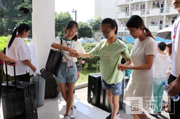 开学报到当天,班主任发动班级同学加入到帮助刘倍贝的队伍中。当天,她在班主任及两名志愿者的搀扶下,利用自助机器完成报到,并在班主任的陪同下,来到自己的宿舍。