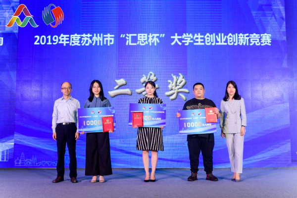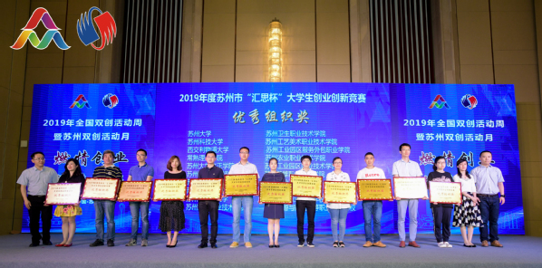 6月6日下午,主题为“燃情创业,筑梦青春”的2019年度苏州市“汇思杯”大学生创业创新竞赛在苏州市澹台湖大酒店隆重举行。本次大赛由苏州市人力资源和社会保障局主办,苏州市劳动就业管理服务中心承办。市发改委、教育局、人社局等单位领导,在苏高校就业创业指导站负责人,各市、区创业服务机构负责人,在校大学生代表等200余人参加竞赛。我院 “青芒文化”项目荣获二等奖,“越溪寻梦广告传媒工作室”入选“蒲公英”创业项目,学院荣获“优秀组织奖”。