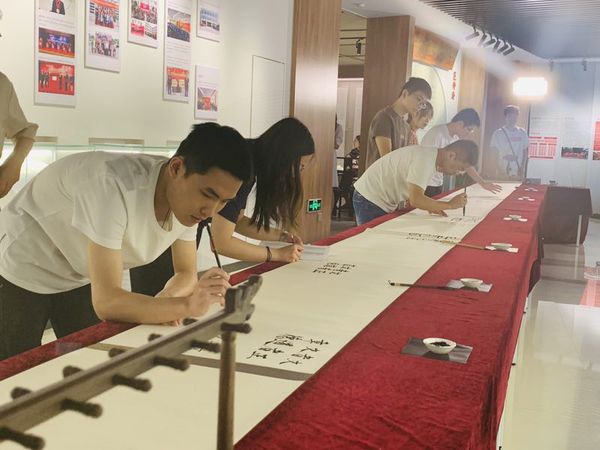 10米长轴缓缓铺开,几十名毕业生在空白卷轴纸上挥毫着墨……又是一年毕业季,6月12日下午,苏州大学文正学院各毕业班级的57名学生代表齐聚校史馆,在10米长轴上“秀书法”、写校训,感受文正学院的“特殊”毕业教育。