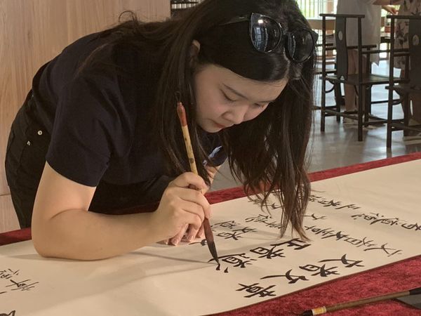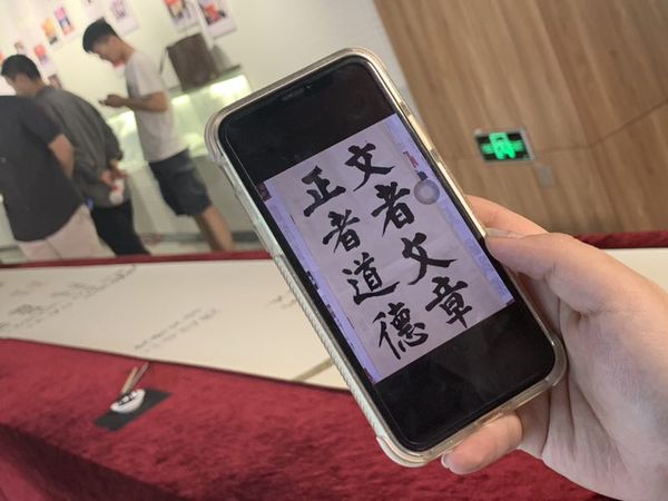 作为班级推选出来的唯一代表,每个同学既兴奋又有点小紧张。不少人提前来到活动现场,一笔一划地练习起来。拥有书法功底的同学则显然更加“笃定”。会计专业的严明珺同学从小就跟着爷爷练习书法,进校之后又选修了书法课程。严明珺告诉记者,虽然她并不怯场,但为了有更好的表现,还是事先和爷爷探讨了一下“文者文章,正者道德”这几个字的写法,并把爷爷写好的字存在手机里细细体会。“此次活动让我对校训有了更深一层的理解,也感觉到肩上沉甸甸的责任。”严明珺说。