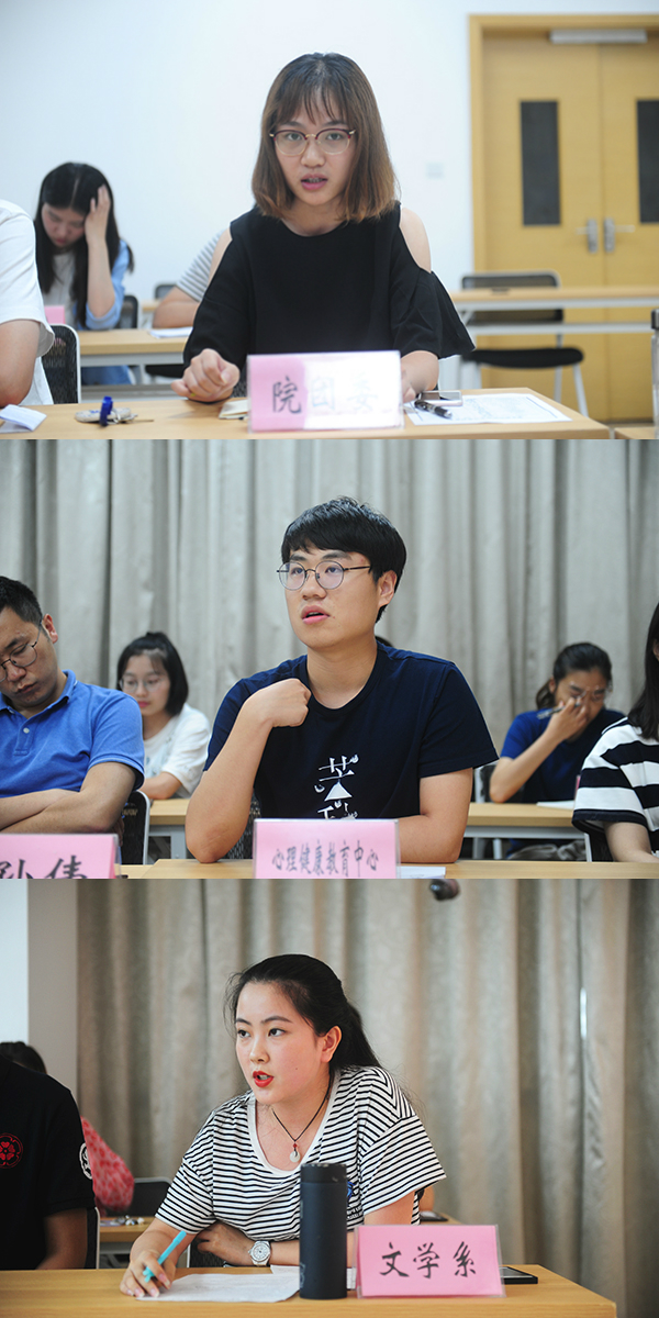 何玉对四家学生组织的汇报内容进行点评。她提出,各家学生组织负责人在交流时要围绕学院中心工作,扎实开展各项重点工作。随后,与会代表就如何在2019级新生中进一步做好学院学生组织的宣传工作展开汇报。大家认为要通过加强宣传路径和扩大覆盖面的方式,有效提升和班支委的对接工作,从而加深新生对学生组织的认识和了解。