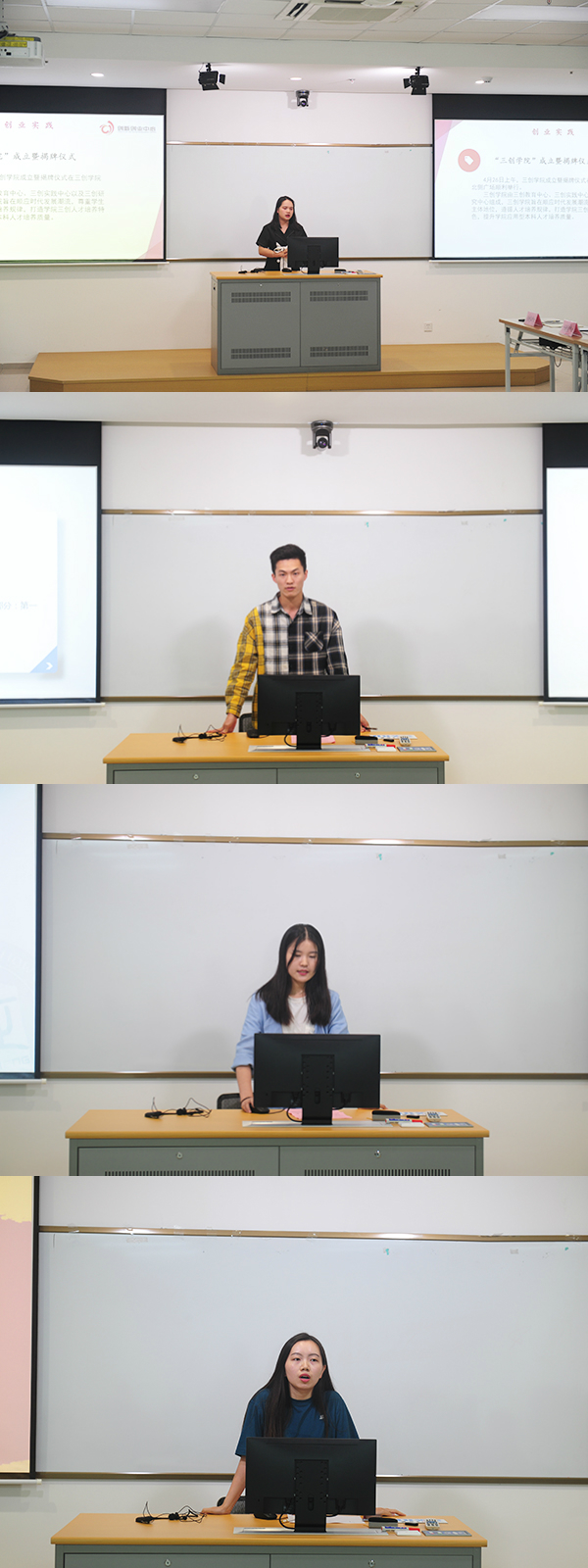 会议伊始,创新创业中心、外语学习中心、经济系、电子系进行2019年春学期工作总结汇报。创新创业中心就三创学院各项工作推进以及对接生涯发展委员工作进行阐述。外语学习中心围绕中心职能、介绍机构改革的背景展开汇报。经济系、电子系分别就品牌活动的打造和对接班支委等相关工作情况为主题做出细致总结。