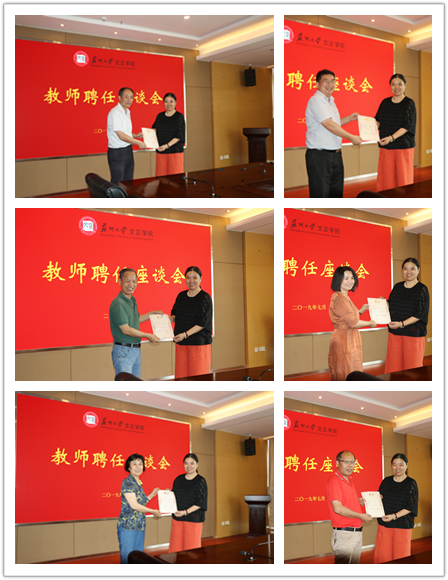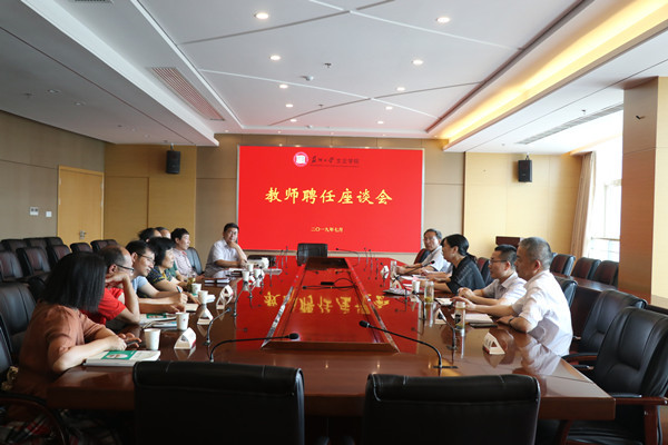 7月4日下午,我院教师聘任座谈会在综合楼三楼大会议室举行。副院长施盛威、人事处处长周文军、教务处处长张毅驰、教师发展中心主任凌亦青,相关系(室)主任及本次聘任的教师出席座谈会。