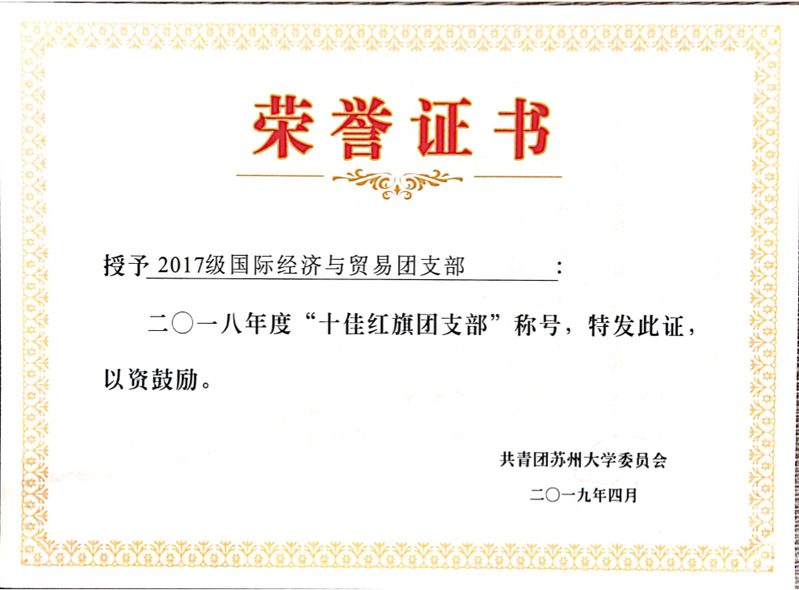 2017级国际经济与贸易团支部荣获苏州大学“十佳红旗团支部”称号