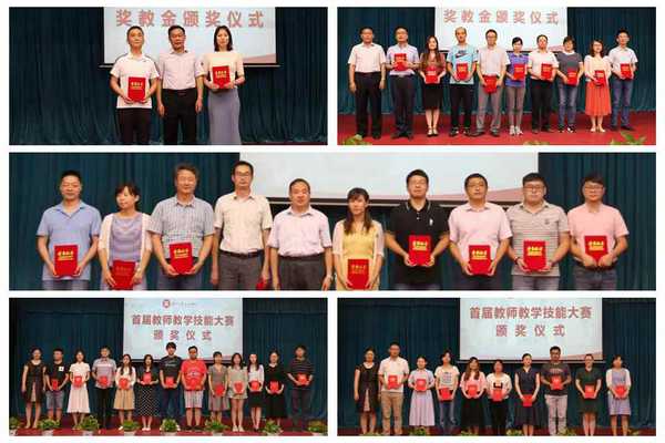 会上,院长办公室潘梦琦老师宣读学院2019年奖教金和首届教师教学技能大赛表彰决定,院长吴昌政、党委书记仲宏、副院长施盛威分别为苏州银行奖教金、建设银行奖教金、胜利精密奖教金、教师教学技能竞赛获奖的获奖老师颁发荣誉证书。