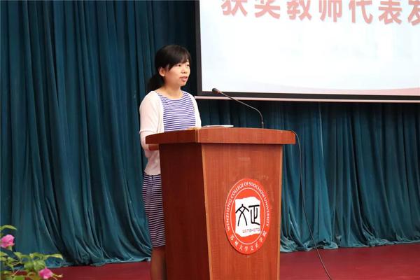 计算机工程系龚兰兰老师作为获奖教师代表发言,并与大家分享自己从教的感悟,即“有梦想”“要勤奋”“教师要学农民——尊重个性,精耕细作”。她希望以后能够与大家一起互相学习、共同进步、向上求实、向善求真,表示将继续以身边的优秀教师们为榜样,负重奋进。