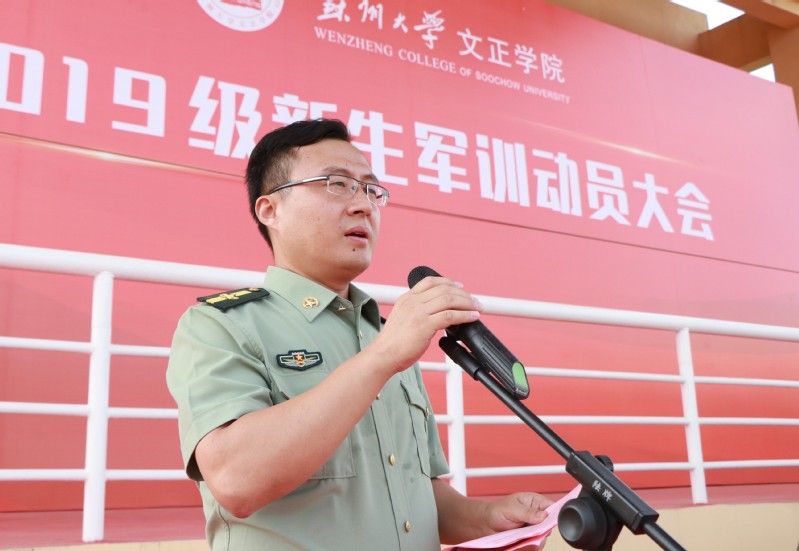 9月15日下午,我院2019级学生军训动员大会在运动场举行。苏州大学学生工作部部长、军训团政委孙庆民,苏州大学军训团副团长张镇华,我院院长吴昌政,党委书记仲宏,副院长施盛威等出席动员大会。大会由院长助理、学生工作部部长(兼)卞海勇主持。