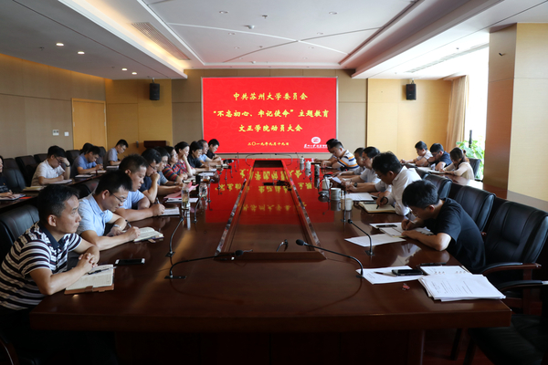 9月19日上午,我院在综合楼大会议室召开“不忘初心、牢记使命”主题教育动员大会。苏州大学党委主题教育巡回指导组副组长兼第九组组长、苏州大学党委委员、工会主席王永山,苏州大学党委主题教育巡回指导组第九组副组长、苏州大学人文社会科学处副处长尚书等一行人,文正学院院长吴昌政、党委书记仲宏、副院长朱跃、纪委书记解燕,其他党委委员、处级干部,以及全体支部书记共同参加动员会,吴昌政主持会议。