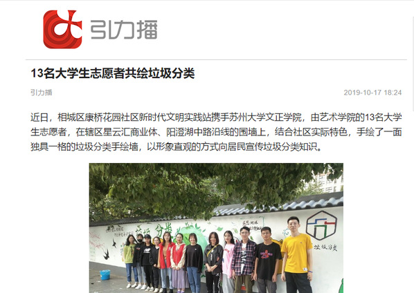 近日,相城区康桥花园社区新时代文明实践站携手苏州大学文正学院,由艺术学院的13名大学生志愿者,在辖区星云汇商业体、阳澄湖中路沿线的围墙上,结合社区实际特色,手绘了一面独具一格的垃圾分类手绘墙,以形象直观的方式向居民宣传垃圾分类知识。