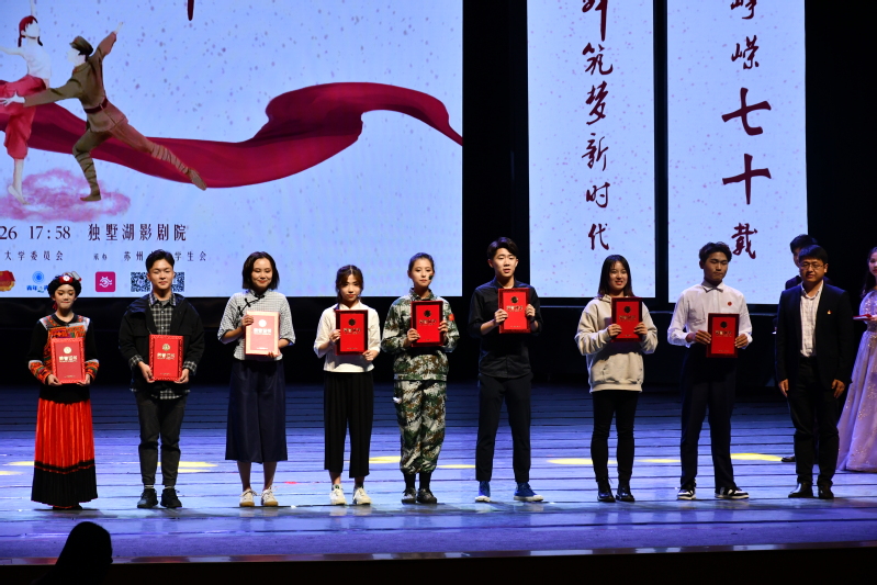 10月26日晚,苏州大学2019年新生舞蹈大赛在独墅湖影剧院如期举行。为了庆祝中华人民共和国成立70周年,大赛以“风起峥嵘七十载,燃舞筑梦新时代”为主题,苏州大学党委常委、副校长刘标,团委书记肖甫青等出席比赛。我院艺术团指导教师毋张明与同学们一起观看比赛,经过激烈的角逐,我院参赛作品《庄严的宣誓》荣获三等奖。