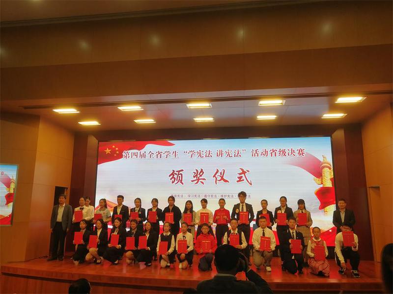 省级决赛分为演讲比赛和法治知识竞赛两个部分,演讲比赛包括主题演讲和命题演讲两个环节,法治知识竞赛包括知识考查和知识竞答两个环节。比赛现场,参赛选手心怀对宪法的尊崇与热爱,以朝气蓬勃的精神面貌,富有感染力的语言表达,在知识竞赛中展现出扎实的宪法知识储备和出色的思辨功力,在演讲比赛中用青春的视角畅谈对宪法权威的尊崇,道出自己的独特见解,在一天半的比赛中展示了良好风貌。最终,席学志、曹玥两名同学分别获得法治知识竞赛和演讲比赛的二等奖。