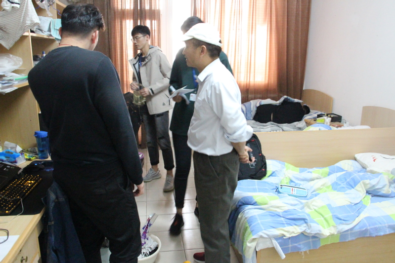 为进一步加强宿舍安全管理,消除宿舍安全隐患,督促学生养成良好的卫生习惯,构建安全文明的宿舍环境,10月30日下午,保卫处联合学生处、物业公司、安保公司共同开展了宿舍安全卫生大检查。保卫处老师、学生处辅导员、学生奖惩安全委员会、学生会生活部、机电系党支部及物业、安保人员一共50余人,分为六个检查组,深入学院16栋宿舍公寓,针对宿舍内务、卫生及安全进行专项检查。