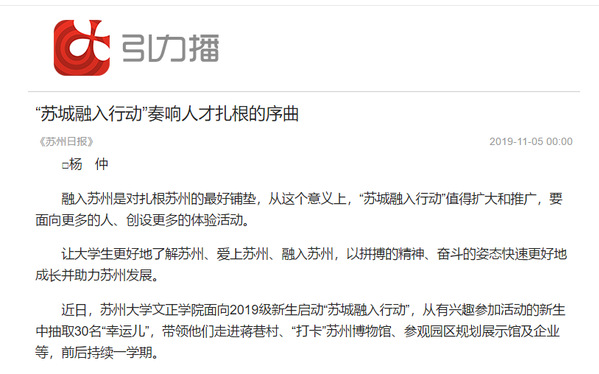 融入苏州是对扎根苏州的最好铺垫,从这个意义上,“苏城融入行动”值得扩大和推广,要面向更多的人、创设更多的体验活动。