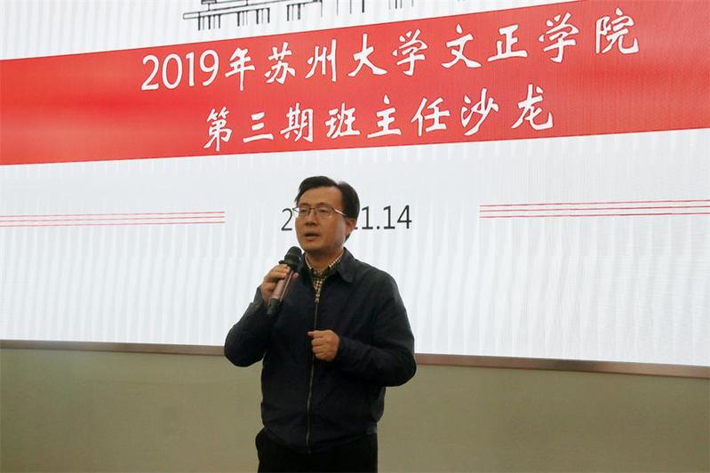 11月14日下午,我院第三期班主任沙龙在教学楼3-101顺利举行。我院院长助理、学生工作部部长(兼)卞海勇,学生处处长祁素萍,副处长孙兰镇,学生处全体学工办主任以及学院担任班主任工作未满四年的80余位班主任老师参加了本次沙龙。沙龙由学生处田克迪老师主持。