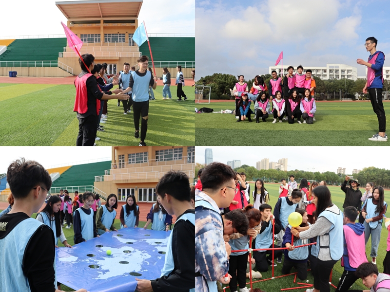 活动在操场举行,分为理论指导、团队游戏、总结反思三个部分。根据要求,参与同学分成四个小组,以团队为单位完成世界球、呼吸的力量、穿越雷阵图、动力圈四个项目。培训老师通过一系列活动调动了大家的热情与积极性,增加了彼此之间的互动,增强了团队的凝聚力,发挥出团队协作的力量。