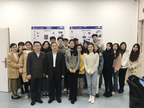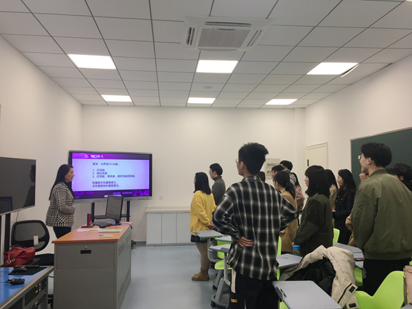 院党委书记仲宏、教务处处长张毅驰到课堂与黄蕾老师和同学们合影留念