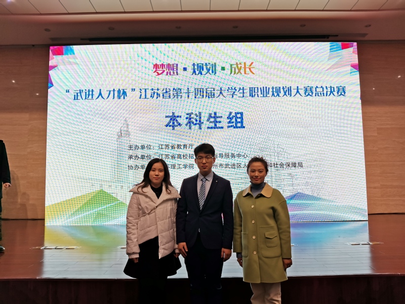 11月28日,“武进人才杯”江苏省第十四届大学生职业规划大赛总决赛在江苏理工学院如期举行。经过激烈角逐,我院2017级播音与主持艺术专业顾宸铭同学荣获一等奖,2018级国际经济与贸易(W)专业庄杰同学荣获二等奖,2017级英语专业陈思言同学荣获三等奖,实现了学院在此项赛事中的历史性突破。
