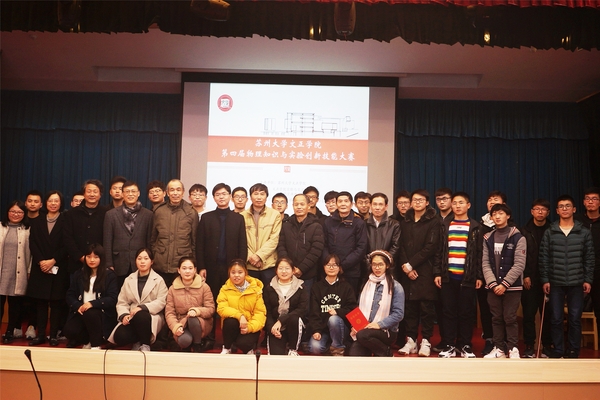 12月3日晚,我院第四届物理知识与实验创新技能大赛决赛在学术报告厅举行。江苏省物理学会副秘书长晏世雷,苏州大学大学物理实验国家重点实验室主任方建兴,我院院长助理、教学工作部部长(兼)胡荣,机电工程系主任钱志良,光电与能源工程系主任邹丽新,轨道交通工程系主任姚林泉,电子信息工程系主任陈蕾,三创学院副院长、大学物理课程建设负责人李成金,光电与能源工程系专业教师钱铮、孙晓燕,出席本次决赛并担任评委。
