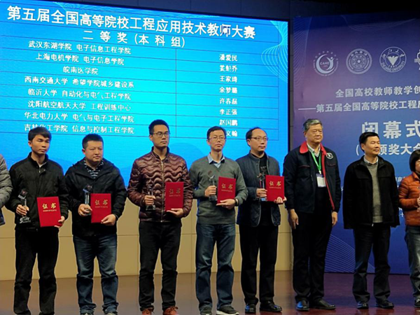本届大赛共设置17个项目,以现代制造、化工环境与新能源、自动化系统、电子信息和电气工程等若干技术领域为背景,通过工程应用系统的设计和实践,以技术竞赛的方式,提升教师的理论知识应用水平和工程实际操作水平,为培养更多高质量、高水平的工程应用型人才创造条件。决赛形式包括工程实践操作、目标命题实现及答辩环节。由中国工程院院士吴澄、孙优贤领衔,几十位工程教育领域具有丰富教学和实践经验的知名专家担任决赛评委和现场裁判,对参赛选手在“工程实践操作”和“目标命题实现”两个环节的现场操作和答辩表现进行评分,并按赛项给出综合排名。最终,我院实验与实习管理中心彭芳老师获“最佳设计奖”、“可编程序控制系统设计及应用”一等奖;电子信息工程系周敏彤老师获“电子技术创新设计与应用”一等奖;实验与实习管理中心蒋常炯老师获“工业机器人与机器视觉应用技术”二等奖。