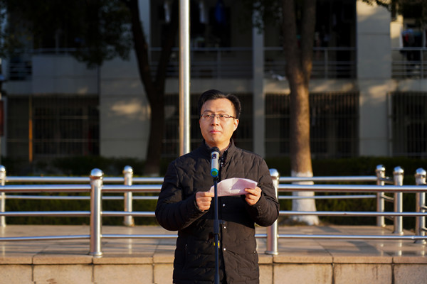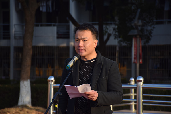 教师代表唐旋发表讲话。他为大家讲解了国家公祭日的由来,号召同学们铭记历史,奋发图强,真正把爱国之志变成报国之行,为祖国的辉煌贡献自己的力量,只有以历史为镜,才能展望未来。
