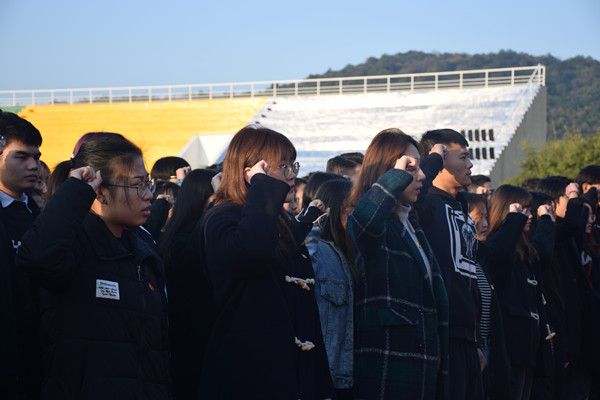 2019年12月13日是第六个南京大屠杀死难者国家公祭日。为悼念南京大屠杀死难的同胞,缅怀革命先烈,我院团委开展“国旗下的教育”信仰公开课第八课——“以史为鉴,矢志复兴” 南京大屠杀死难者国家公祭日主题教育活动。我院院长助理、学生工作部部长(兼)卞海勇,学生处处长祁素萍,学生处副处长孙兰镇,思政教研室教师唐旋,全体团学指导老师及655名学生代表齐聚操场。晨课由团委副书记郭浩主持。