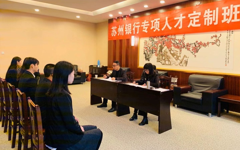 面试结束后,新一期的专项人才定制班开班工作正在有序推进中,苏州银行专项人才定制班所形成的校企合作人才培养模式,也为学生高质量就业打造了一条直通车。