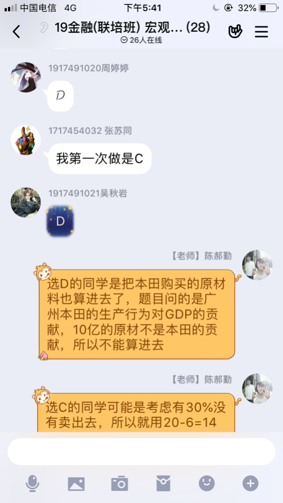 周二上午8:40,陈郝勤老师准时在QQ上开始了课程线上答疑辅导。学生纷纷提问,陈老师一一解答。