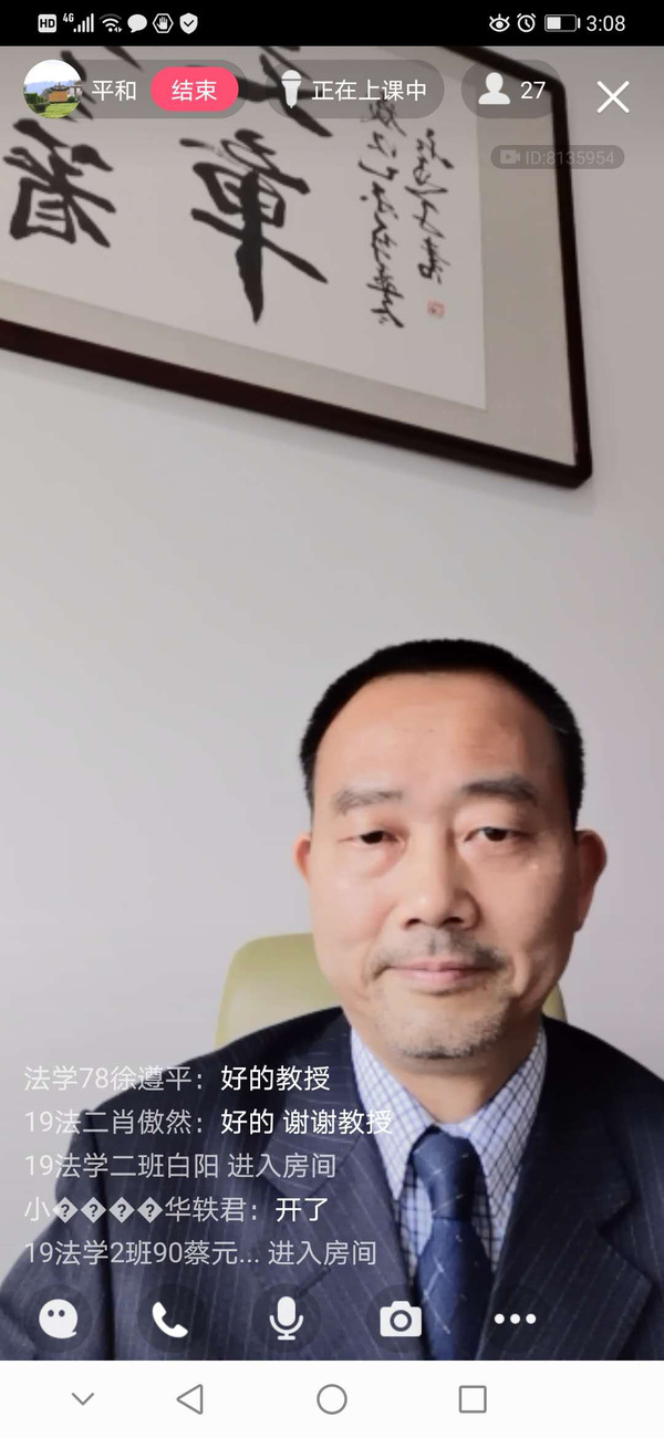 2月24日星期一,新学期第一天,法政系线上教学老师:丛培栋、何纯荪、焦卫东。