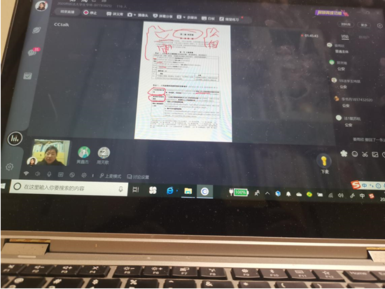 郁佳婷老师的基本做法是:引进西南政法大学在中国大学MOOC《商法》课程。考虑到MOOC与我院的课程大纲不一样,而且课程视频时长较短,所以同时还选择了QQ直播的方式进行线上授课。在新学期开始前,先在网上购买了商法教材,然后通过云盘分享给学生使用,解决了学生没有实体教材的问题,方便学生浏览教材,跟上教学进度。同时,先将PPT上传至群里,以免出现直播过程中PPT放映卡顿的现象。在QQ直播过程中,通过QQ分享屏幕语音连线的方式给学生进行授课,并向同学们提出问题,同学们通过QQ留言的方式回答问题,并且同学们有问题时可以随时通过留言的方式提出,老师随时解答,这样的互动模式非常直观,也让老师充分了解到学生的听课状态,教学效果好。