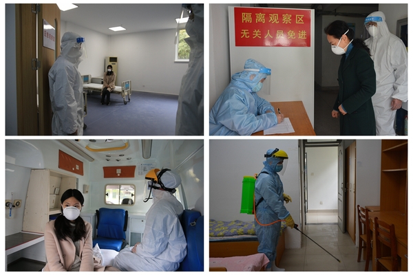 医务室第一时间派出两位做好全套防护措施的医护人员来到学生宿舍,给发热学生换上N95口罩,并带至医务室发热门诊进行进一步检查。经过再次体温测量和相关情况询问,该同学被初步判断为疑似新冠病例。医生将其安排到隔离病房后,紧急联系120专车,一边和定点医院门诊进行联系并告知相关情况。