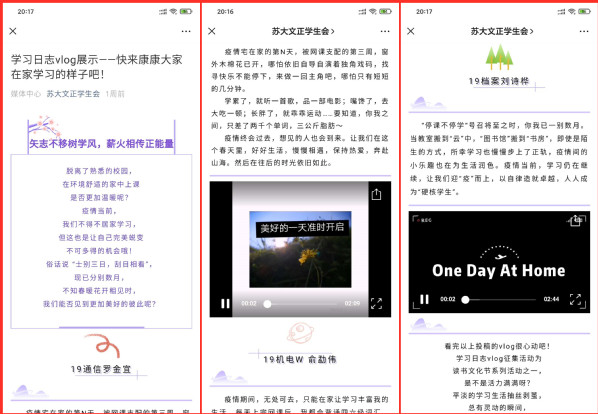 面向全体同学开展寻找“最美笔记”活动,引导同学们在线上教学期间养成记听课笔记、课程思维导图的习惯;面向全体同学开展“Vlog短视频”典型征集活动,记录同学们居家学习的过程、心得等;面向全体学习委员和课代表开展人物典型征集活动,征集他们在配合线上教学期间的先进事迹和做法,为其他班级学习委员和课代表提供借鉴。活动启动以来,得到了同学们的积极响应,共收集到“最美笔记”110份,“Vlog短视频”作品25份,人物典型事迹21份。